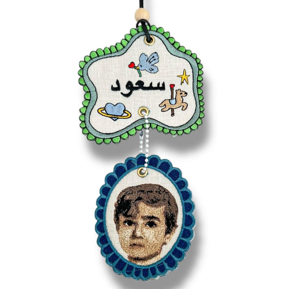 تعليقة سيارة مطرزة باسم وصورة شخصية